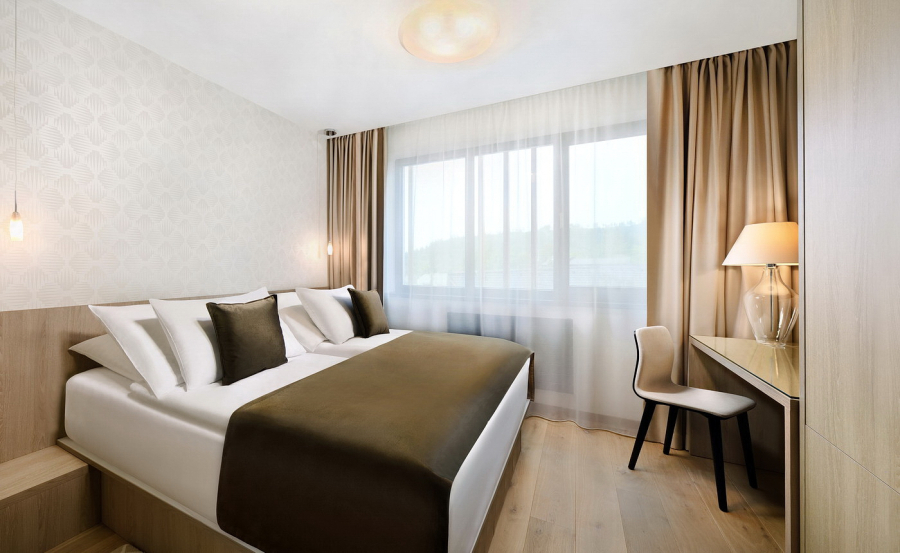 Vzdušná izba v modernom štýle s rozlohou 22 m2 sa nachádza v modernej časti Hotela Lomnica. Poskytuje priestor aj na komfortnú mobilnú prístelku pre tretiu osobu, ktorú si môžete doobjednať podľa štandardného cenníka. Vychutnajte si estetickosť priestoru v kombinácii s maximálnou účelovosťou.